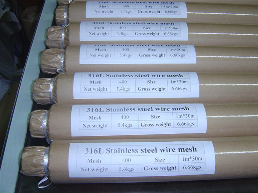 不銹鋼網(wǎng)寬度為0.914米、1米、1.22米、1.3米、1.4米、1.5米、1.6米、2米。主要材質(zhì)為316L、316、304L、304、302、201、純鎳(N:99.5%)。高目數(shù)不銹鋼網(wǎng)主要特點表現(xiàn)為材質(zhì)準確穩(wěn)定、網(wǎng)面平整整潔無污物、網(wǎng)孔均勻無變形、延伸良好耐磨損。高目數(shù)不銹鋼網(wǎng)包裝要求嚴格,首先把不銹鋼網(wǎng)打成卷狀→不銹鋼卷包好牛皮紙→牛皮紙外包好塑料膜→塑料膜外包好蛇皮袋子→硬紙筒→木箱。順序包裝防止產(chǎn)品在運輸過程當中受潮受撞擊。